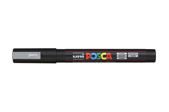 Dekormarker, 0,9-1,3 mm, UNI "Posca PC-3M", ezüst