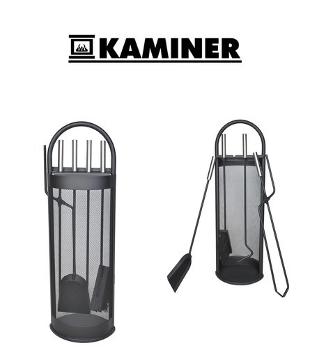 A Kaminer márkájú kandalló kiegészítő szett modern megjelenést és praktikus használatot kínál minden kandalló mellé. A tartós acélból készült eszközök fa- és rozsdamentes acél fogantyúkkal rendelkeznek, az állvány pedig stabil tartást és tisztaságot biztosít, miközben helytakarékos kialakítású.