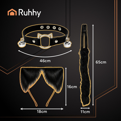 Strój kota / lisa / wilka RUHHY ogon uszy choker, czarny zestaw Therian 3w1, który przyciąga spojrzenia!